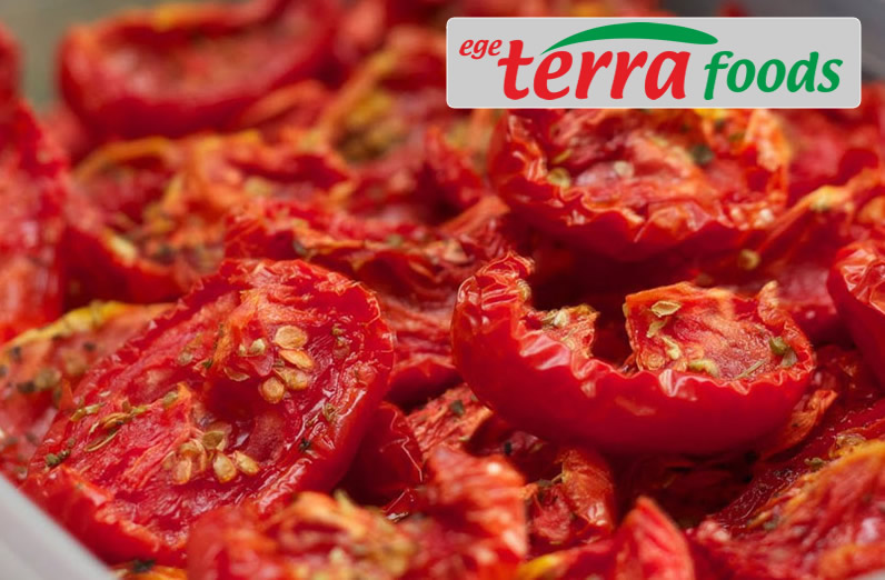 Tomatoes which are to desiccate freshly are exhibited and desiccated under the sun as they are cut into two from middle in desiccating areas on August -September. Sulphur or /and salt is used as preservatives. Dry tomatoes in best quality as raw material which from in our lands or which come from EGE TERRA by our contractor suppliers are packed after the procedures of washing, selection , picking by specifications of customer.